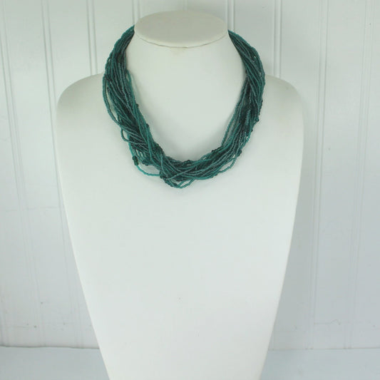 Stunning Teal Iridescent Necklace 24 Strand Tiny Glass Beads