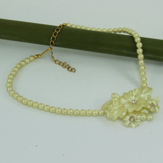 Vintage Necklace Molded Floral Bouquet Pearlized Ivory Rhinestone Centers