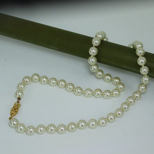 Classic Pearl Necklace Princess Length 18" Knotted 7.5mm Luminous Pearls
