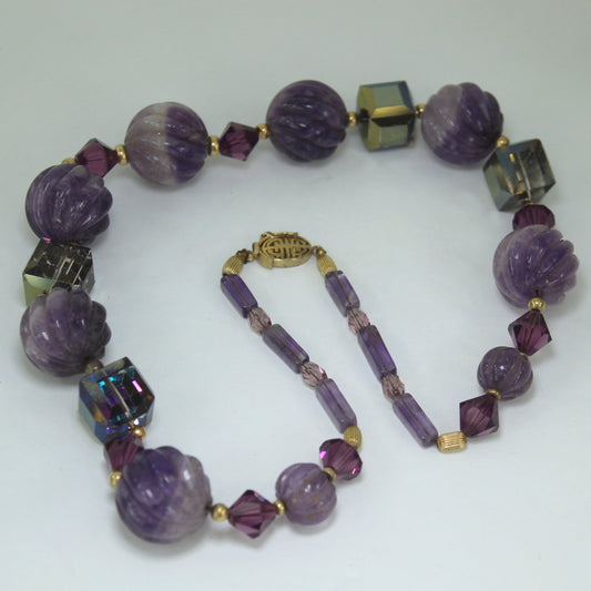 Brilliant Purple Bead Necklace Iridescent Cube Possible Brighton
