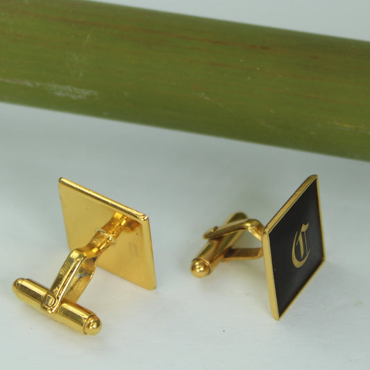 Amita Japan Damascene Cuff Links 1960s Black 24K Original Box