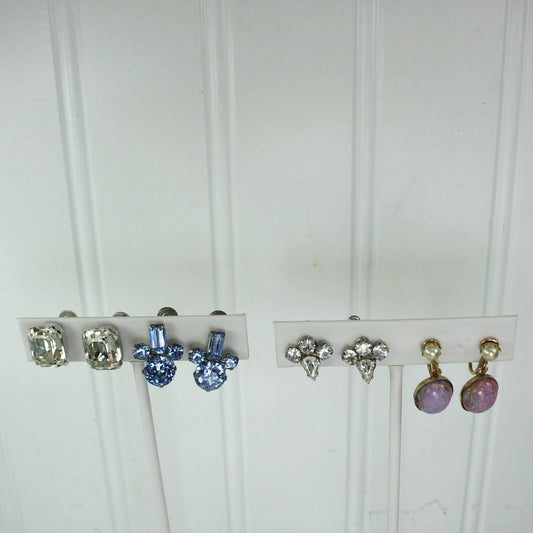 Vintage 1940s Screw Earrings Sparkling Crystals