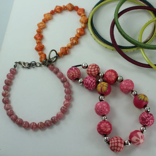 Funky Collection 12 Bracelets Fabric Yarn Beads Wear DIY Projects