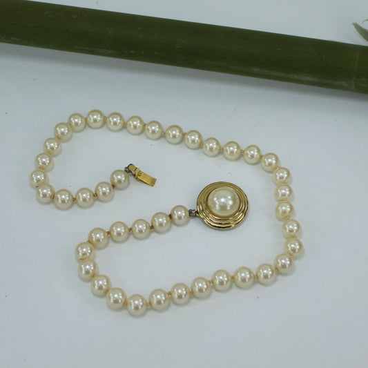 Ann Taylor Pearl Necklace Large Pearl Closure 16" Length Choker