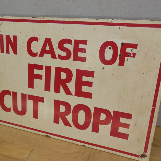 Vtg. Theater Stage Fire Curtain Sign IN CASE OF FIRE CUT ROPE 12X18