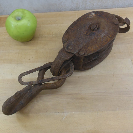Old Antique Crusty Rusty Iron Hook Double Pulley Barn Farmhouse Decor
