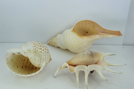 Seashells - Florida Natural Shells 3 Vintage Conch Spider Tun Shell Art
