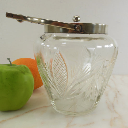 Deykin & Harrison England Silver Plate Thistle Cut Glass Biscuit Jar