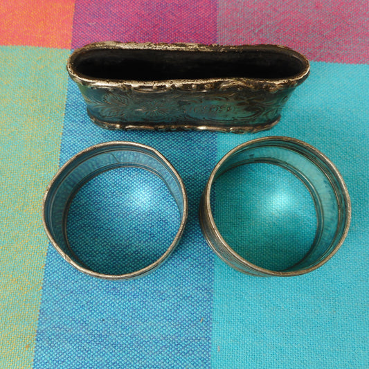 Victorian Antique Silver Plate Napkin Ring Holders Floral Engraved