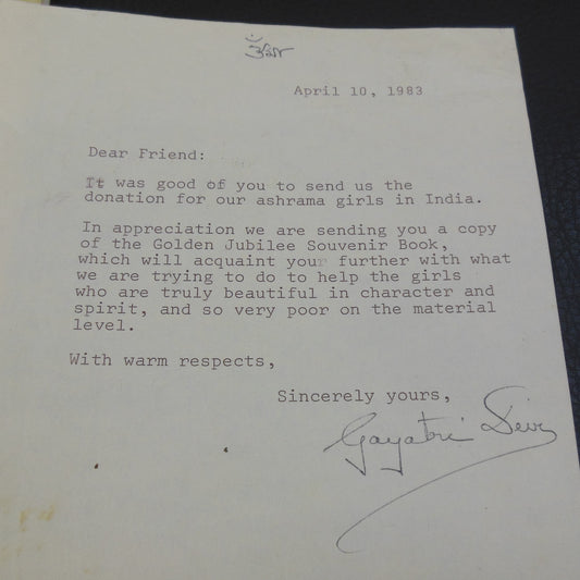 The Story of Sree Ramakrishna Ananda Ashrama 1931-1981 Book - Gayatri Devi Signed Letter