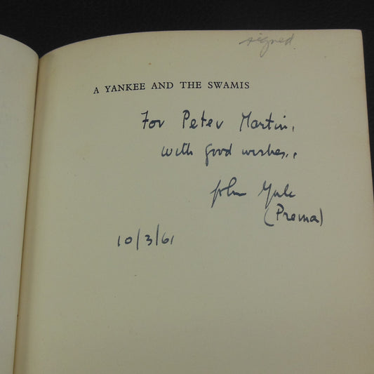Swami Vidyatmananda John Yale Signed Book - A Yankee and the Swamis 1961