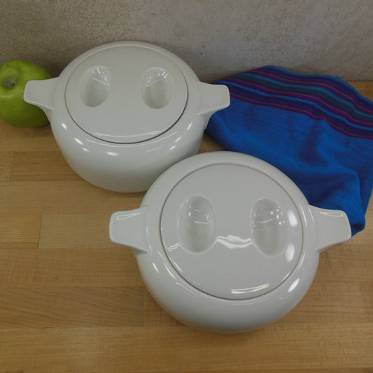 Azberg Germany Pair Delta White Porcelain Lidded Covered Dishes Bowls Modernist