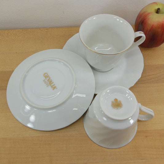 Gevalia Kaffe Swirl White Porcelain Gold Trim King Appointment - Cup & Saucer Pair