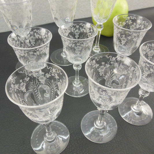 Thomas Webb Crystal Glass 9 Lot Stemware Aperitifs Flower Ribbon