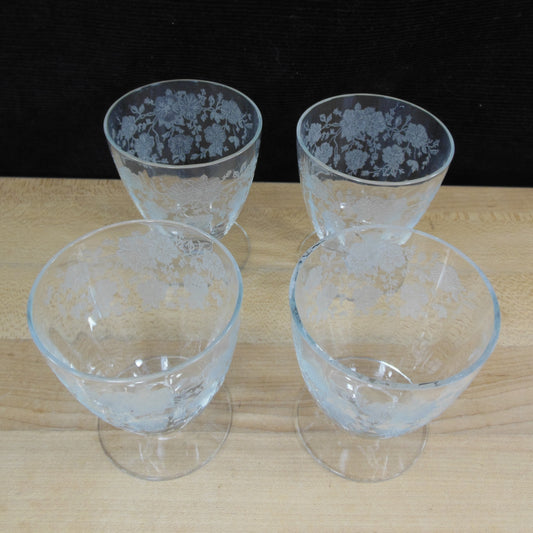 Unknown Maker UNK2629 Elegant Floral Etched Crystal Juice Glass - 4 Set