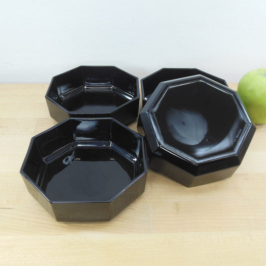 Arcoroc France Octime Black Octagonal Glass Dinnerware - Cereal Bowl 4 Set