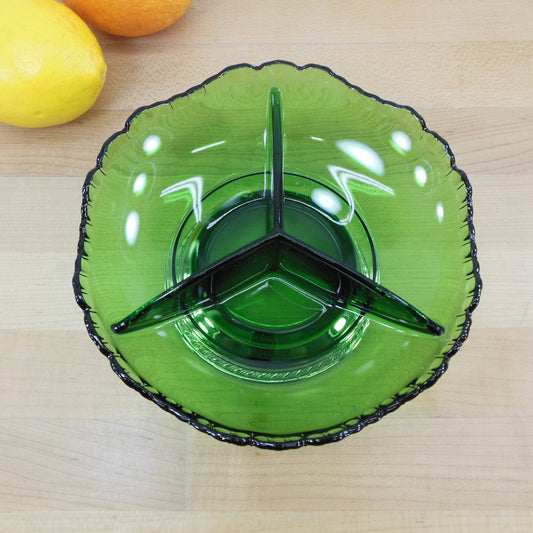Farber Bros. Krome Kraft #5782 3 Part Divided Relish Dish Emerald Green
