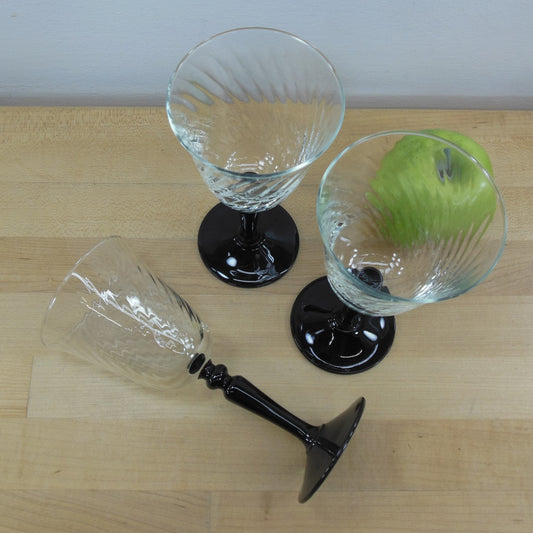 Durand France Luminarc Onyx Swirl Black Stem Glass - 3 Water Goblets