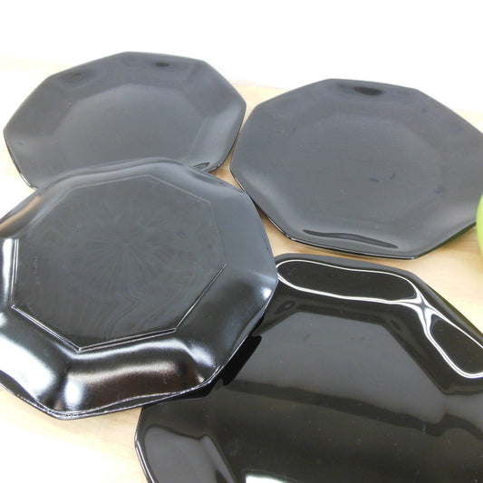 Arcoroc France Octime Black Octagonal Glass Dinnerware - Salad Plate 4 Set