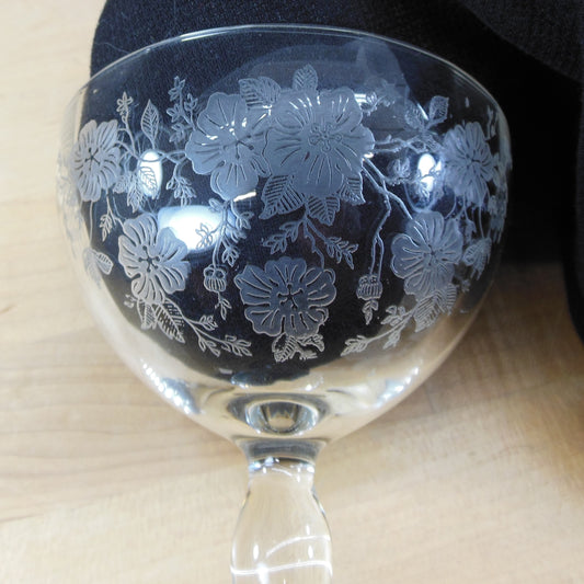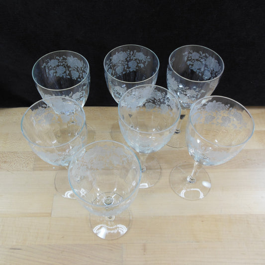 Unknown Maker UNK2629 Elegant Floral Etched Crystal Water Glass Goblet - 7 Set