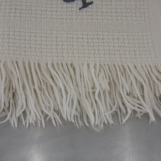 Vintage Faribo Wool/Acrylic Fringed Throw Ivory w/Initial "P" 46 X 50