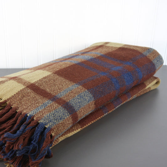 Unlabeled Wool Brown Plaid Fringed Throw 58 X 64