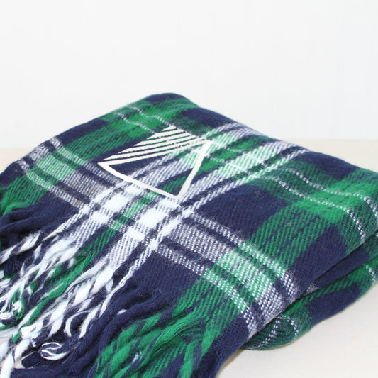 Faribo Acrylic Blue Green White Plaid Fringed Throw 56"L X 55"W
