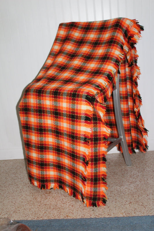 Unbranded Acrylic Cotton Blend Blanket Bedspread - Orange Yellow Black Plaid - 76" X 74"