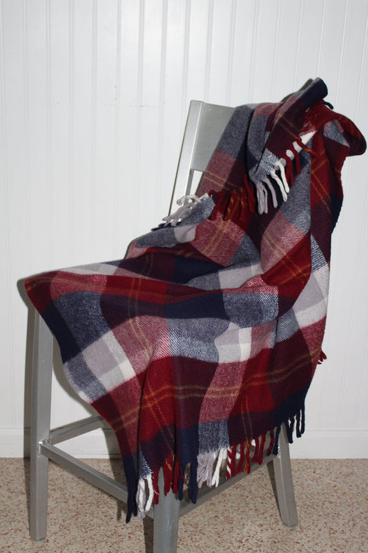 Faribo Acrylic Throw - Navy Maroon Plaid - 52" X 39" USA