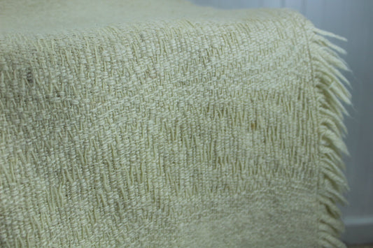 Antique Wool Blanket - Hand Loomed Woven Ivory - 44" X 59"