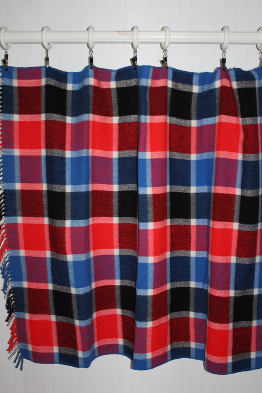 Faribo Acrylic Throw Fluff Loomed All Season Red White Blue Plaid 52" X 60"