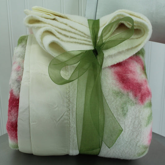 Unbranded Polyester Blend Blanket - White Pink Flower Sprays Cottage Chic 65" X 80"