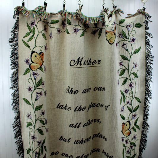 Exquisite Cotton Throw Blanket "Mother" Poem Floral Butterflies