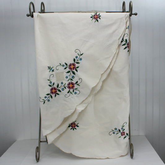 Swiss Linen Oval Tablecloth 10 Napkins Embroidered 1980's 80" X 83"