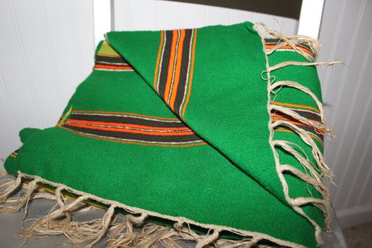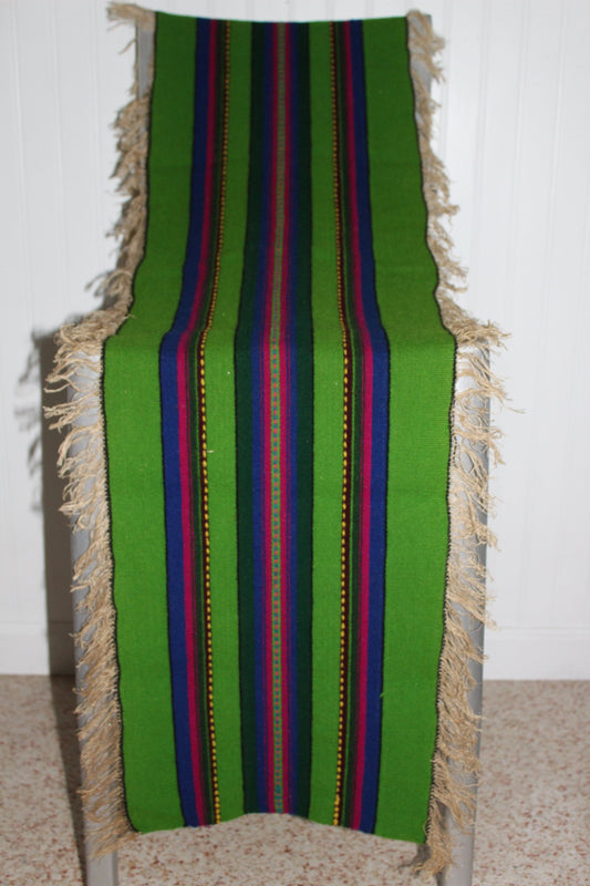 Ukraine Estate Woven Wool Runner - Bed Decor Shawl - Red Royal Blue Green - 26" X 80"