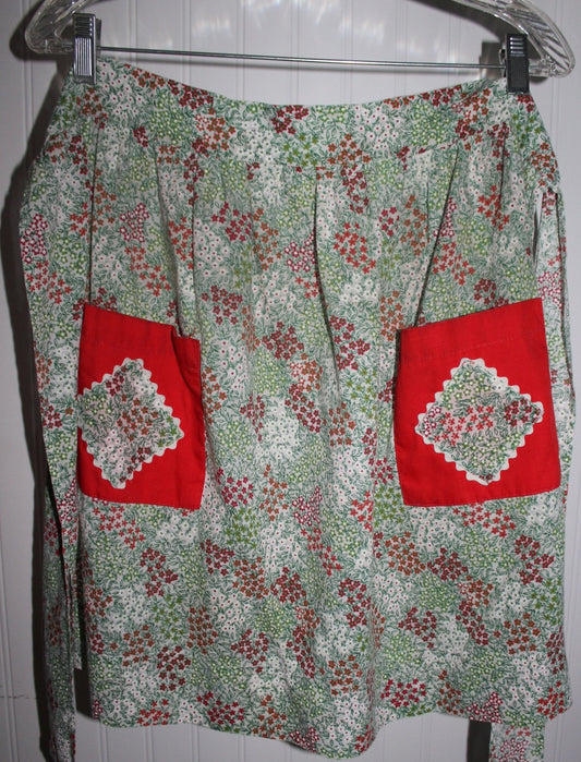 USA Kitchen Aprons Pair (2) Vintage Green Print Cotton Angelica