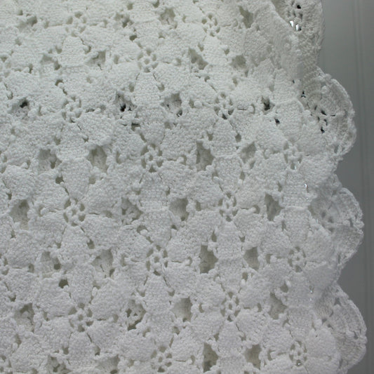 White Cotton Lace Hand Crochet Tablecloth Long Rectangle 78" X 40"
