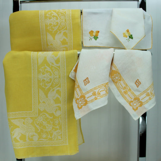Collection Vintage Linens Yellow Theme Napkins Embroidery Applique - Use DIY Crafts