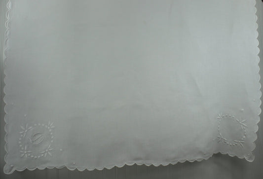 Antique Small White Linen Tablecloth Early 1900s - Monogram "D" Floral