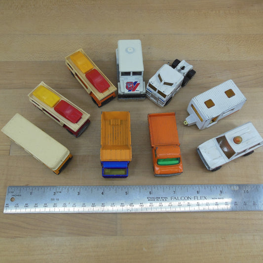 Diecast Toy 9 Lot Trucks Police Trailer Vehicles - Matchbox Lesney Majorette
