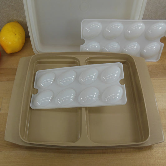Tupperware Deviled Egg Keeper Container 723-2 Tan Brown 16 Halves