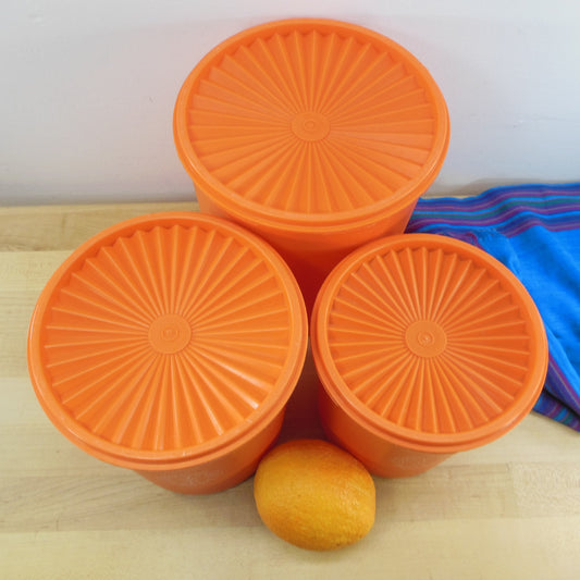 Tupperware USA Orange Servalier 3 Set Kitchen Canisters Containers