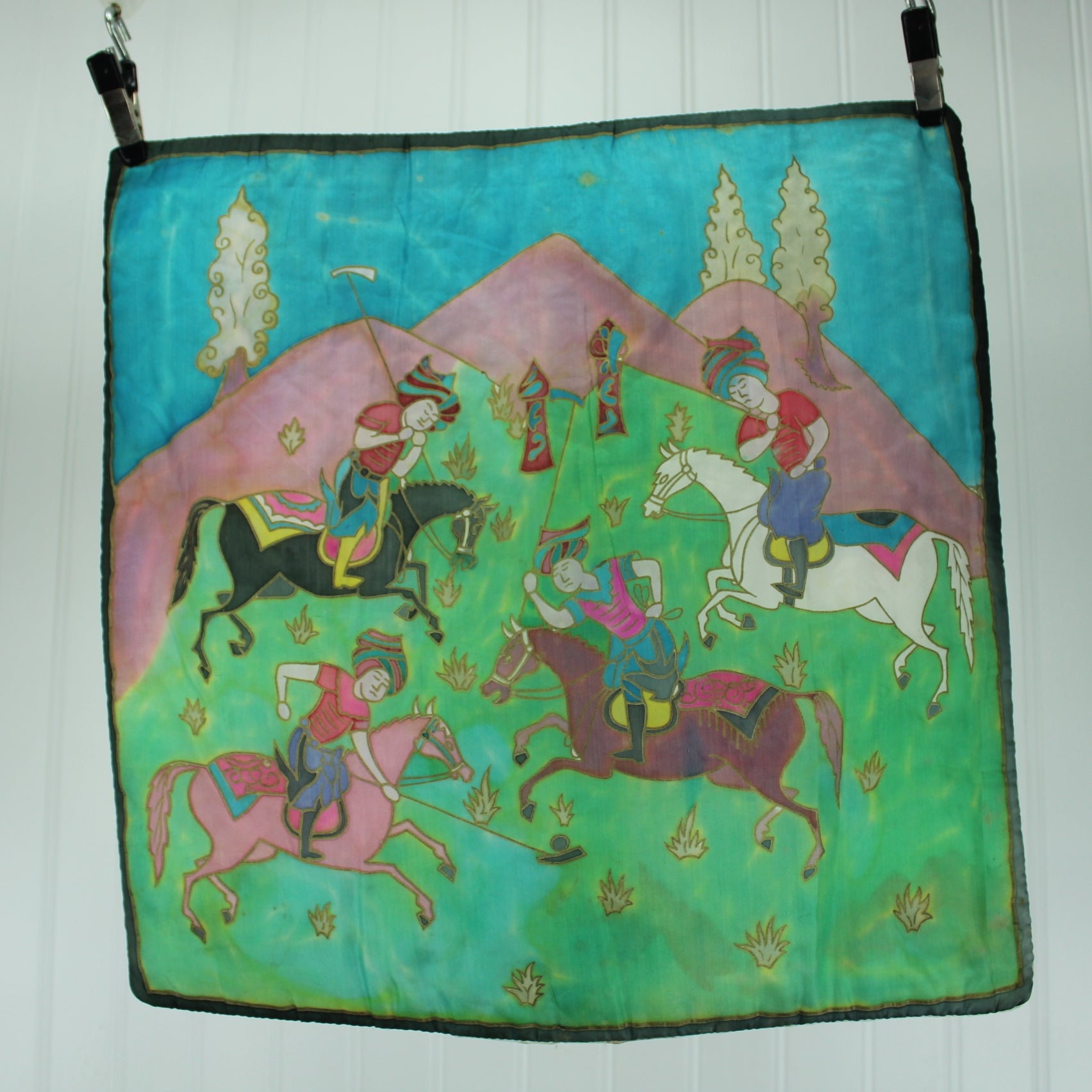 Hand Painted Silk Pillow Cover Turkey "Polo" 1970's
