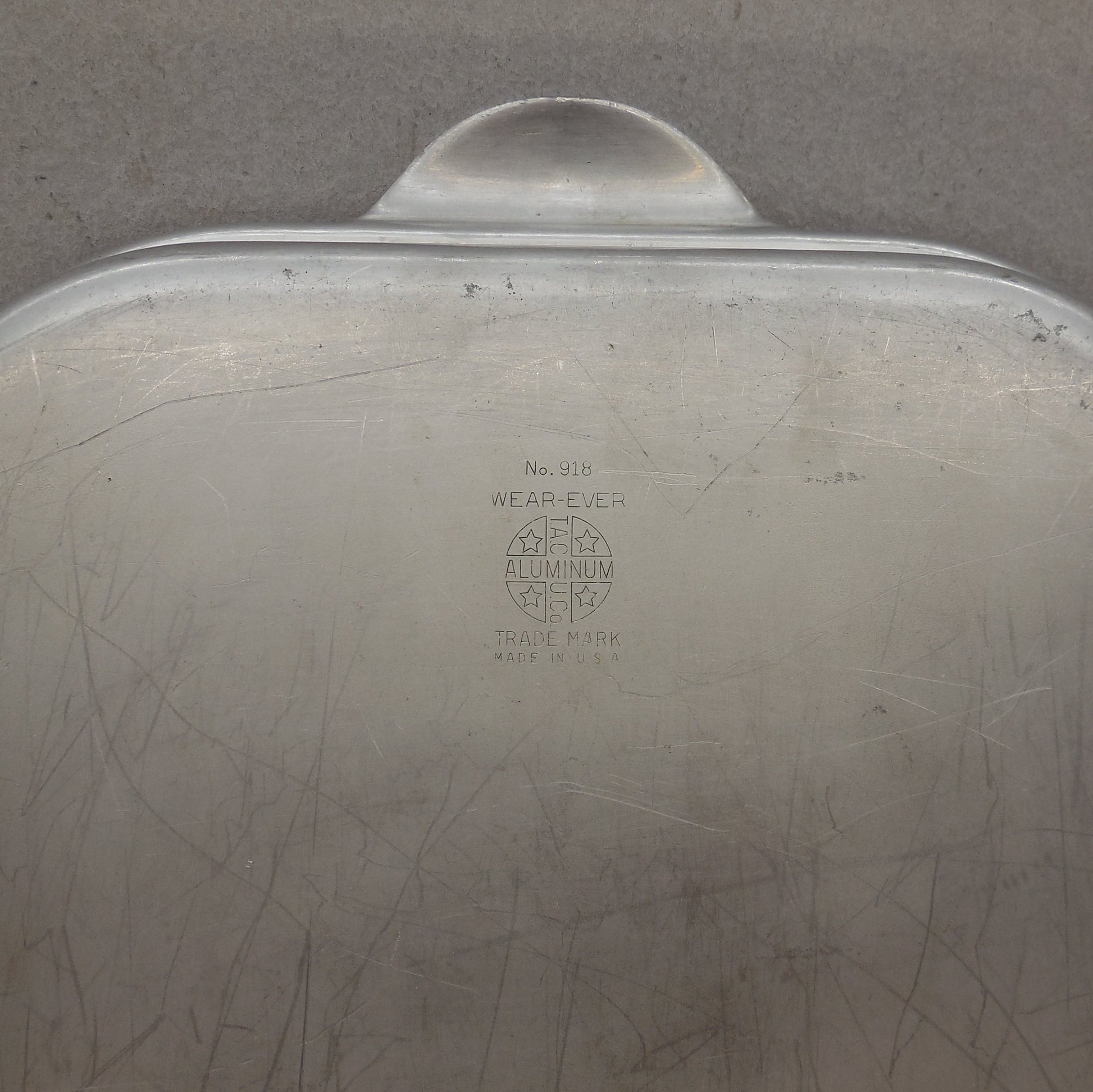 A vintage large open roasting pan or baker by Wear Ever - USA. No. 918 thick heavy constructed commercial cast aluminum - this pan will hold a heavy bird - no problem - or can be used for baking purposes.